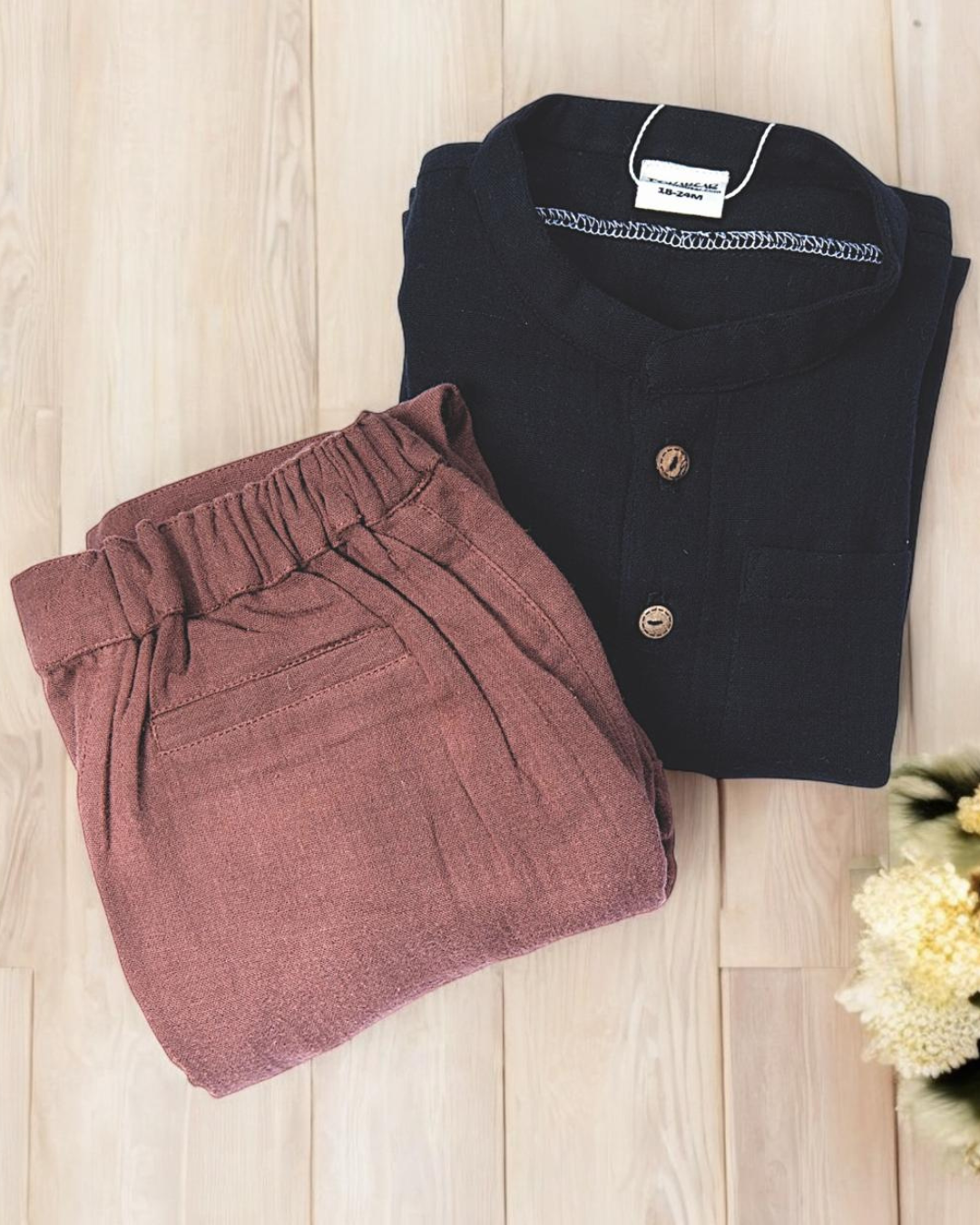 Elevate your little boy’s style with this Mandarin Collar Full-Sleeve Shirt, crafted from double-layered muslin (gauze) for unmatched comfort and elegance. Designed to make your child look like a true little gentleman, this shirt is perfect for any occasion, from casual outings to festive celebrations.
