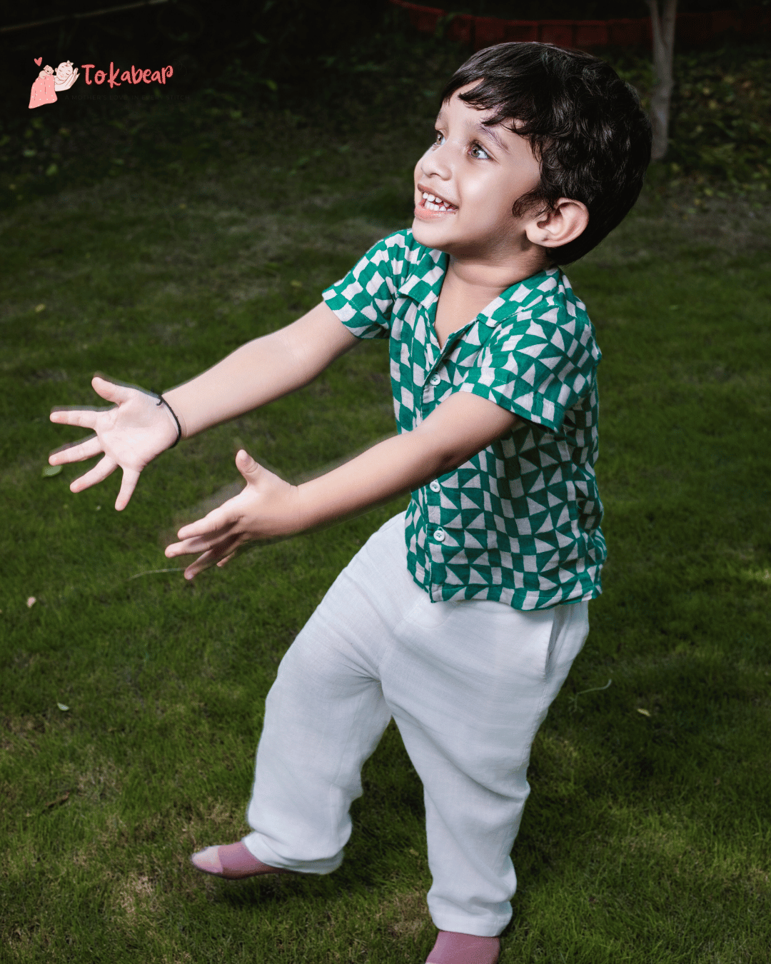 Add a playful twist to your boy’s wardrobe with these half-sleeve muslin shirts, made from super soft and breathable muslin fabric to keep him comfortable all day long. The resort collar lends a laid-back, stylish vibe, while the front placket makes it easy to wear and adds a touch of classic detailing.