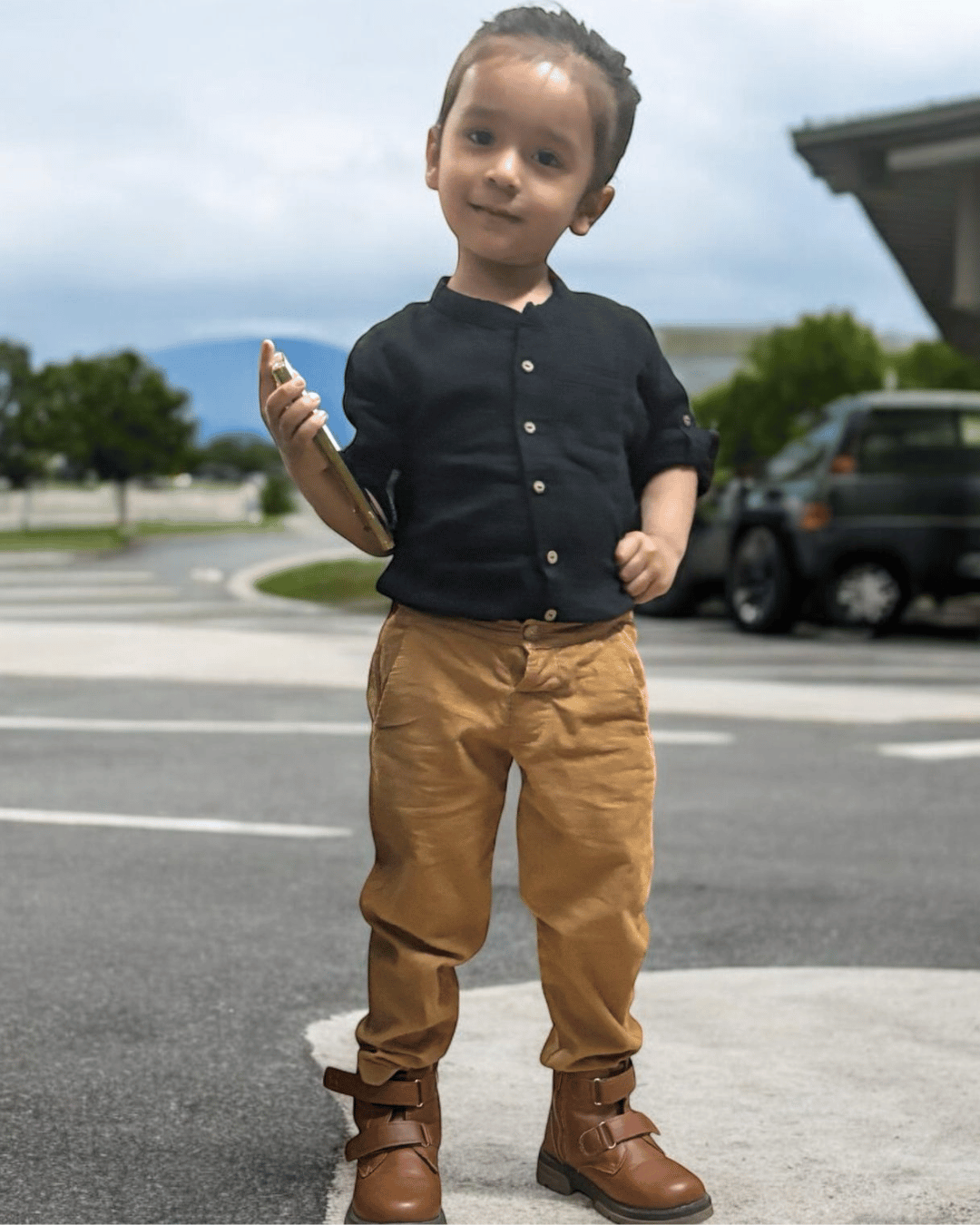 Pairs perfectly with our Black Mandarin Collar Shirt for a clean, classic look that transitions from brunch to birthday parties effortlessly.