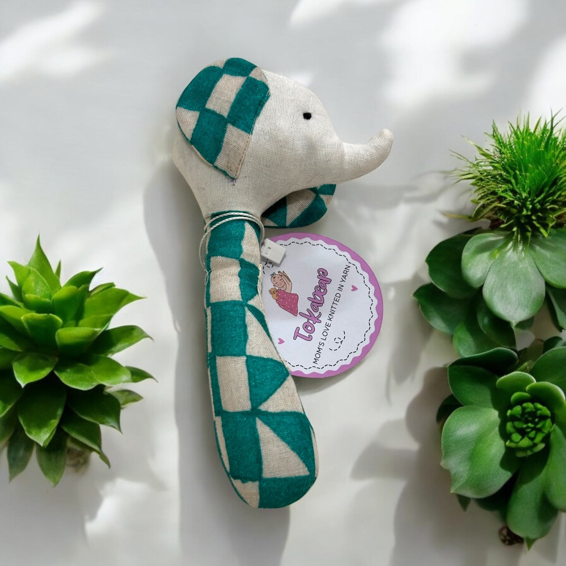 Introduce your little one to a world of sensory delight with the Elephant Rattle & Teether Set by Tokabear. Designed for comfort, functionality, and playful charm, this handcrafted set is perfect for teething relief and early developmental play.