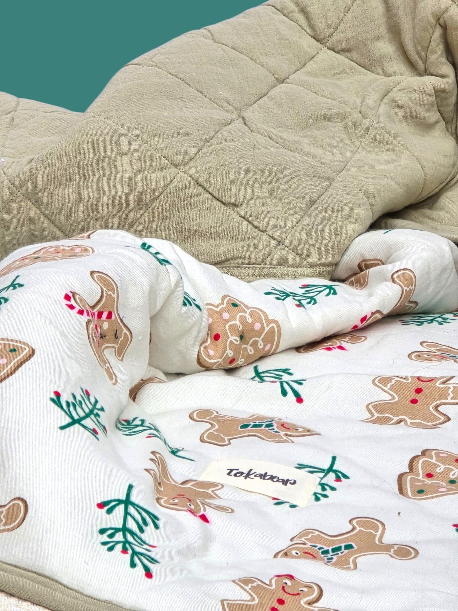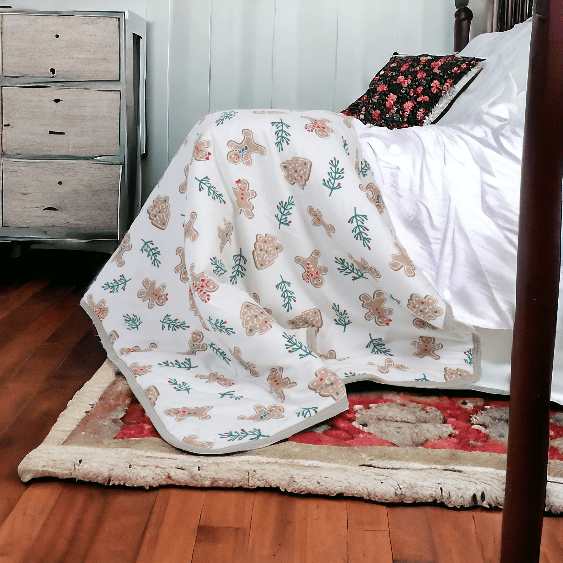 Soft Flannel and Muslin Quilted Toddler Blanket for Toddlers – Gingerbread Man