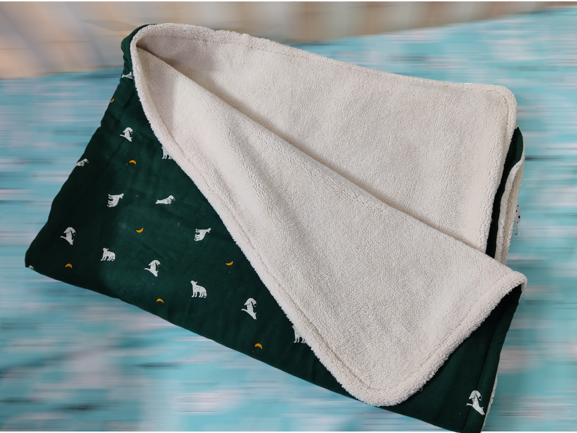- Premium Softness: The blanket’s outer side is made from a high-quality cotton blend, adorned with a charming wolf pattern, while the inner side is crafted from plush, velvety-soft sherpa fabric to keep your toddler warm and snug.