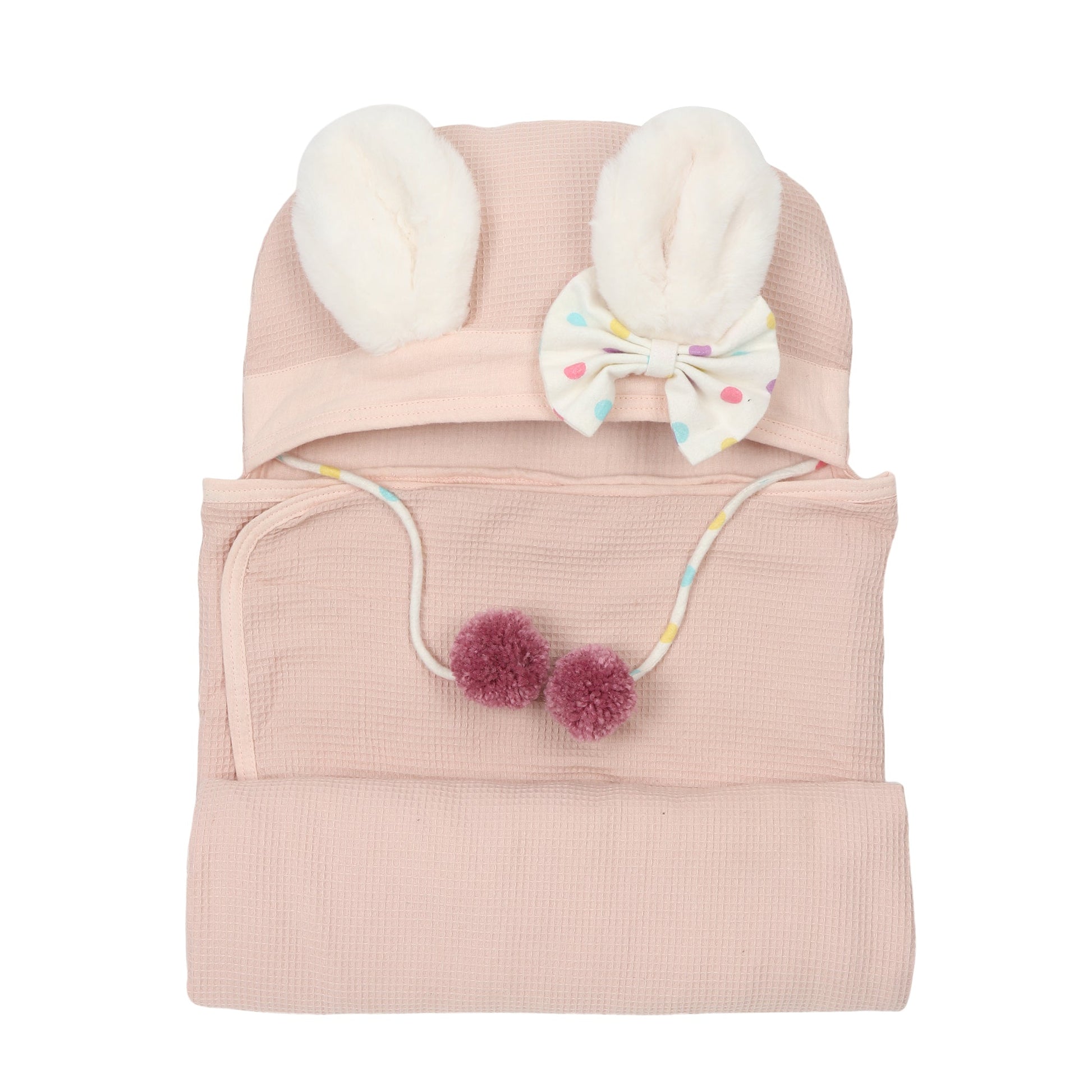 - Adorable Design: Features a hood with fluffy bunny ears, a polka dot bow, and pom-pom accents for an extra touch of charm.