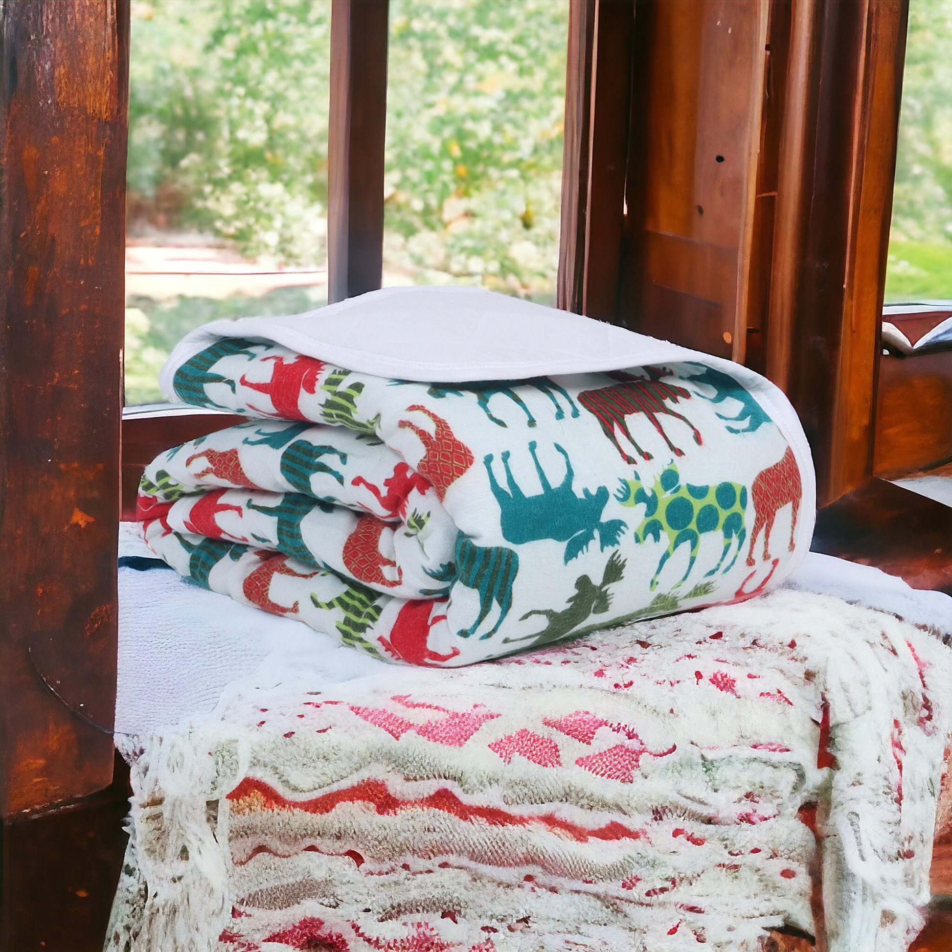 Soft Flannel and Muslin Quilted Toddler Blanket for Toddlers – Reindeer on Snow
